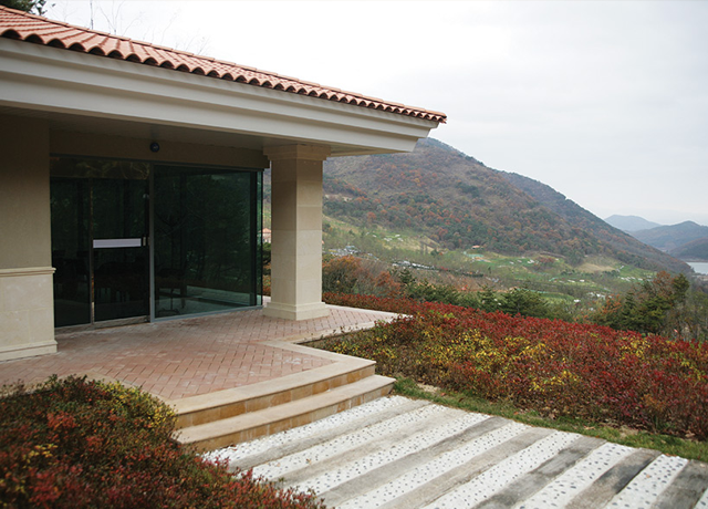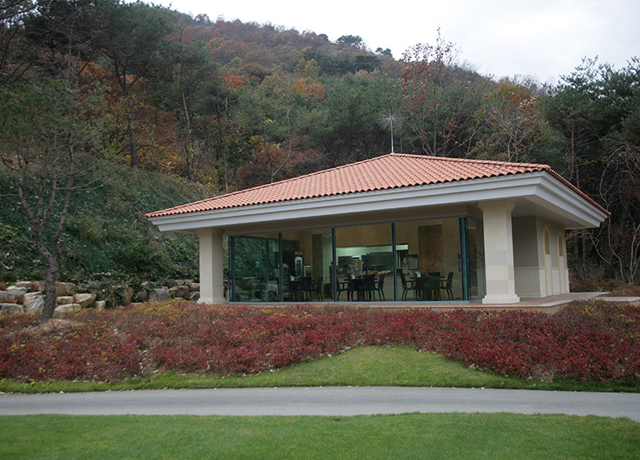 5번홀 그린 뒤에 위치한 제이트 코스 그늘집은 통유리창 밖으로 운곡 저수지 풍경을 담고 있으며, 산속에서 우아하게 자리잡은 클럽하우스와 코스를 한 눈에 즐길실 수 있습니다.